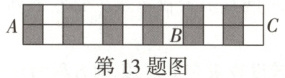 13. “行人守法,安全过街”体现了对生命的尊重,也体现了公民的文明素质,更反映了城市的文明程度. 在某路口的斑马线路段$A - B - C$横穿双向车道,其中,$AB = 2BC = 10$米,在人行绿灯亮时,小刚共用时10秒通过$AC$,其中通过$BC$的速度是通过$AB$的1.3倍,求小刚通过$AB$的速度. 设小刚通过$AB$的速度为$x$米/秒,则根据题意列方程为