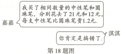 18. 嘉嘉去文具店帮同学买笔,回来后和淇淇的对话如图.