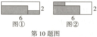 10. 数学活动课上,老师布置了一个任务:“在长为$6$,宽为$2$的矩形纸片内,分别剪下两个小矩形,使得剪下的两个矩形均与原矩形相似,请设计出剪下的两个矩形的周长和最大时的方案,并求出这个最大值.”
