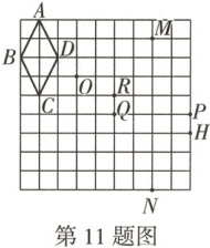 11. (2020河北8题)在如图所示的网格中,以点$O$为位似中心,四边形$ABCD$的位似图形是(