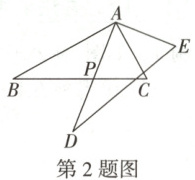 2. 如图,在△ABC 和△ADE 中,AB = AD,∠B = ∠D,BC = DE. 边 AD 与边 BC 交于点 P (不与点 B,C 重合).