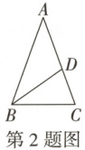 2. (冀教八上习题改编)如图,在$\triangle ABC$中,$AB = AC$,$\angle ABC = 70^{\circ}$,$BD$平分$\angle ABC$交$AC$于点$D$,则$\angle ADB$的度数为(