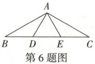6. (冀教八上习题改编)如图,在$\triangle ABC$中,$\angle B=\angle C = 30^{\circ}$,$D$,$E$为边$BC$上的两点,连接$AD$,$AE$,$AD = BD$,$AE = CE$,若$\triangle ADE$的周长为 6,则$BD$的长为(