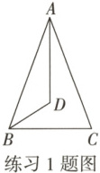 练习 1 如图,在$\triangle ABC$中,$AB = AC$,$\angle BAC$,$\angle ABC$的平分线相交于点$D$。若$\angle ADB = 125^{\circ}$,则$\angle BAC$的度数为(