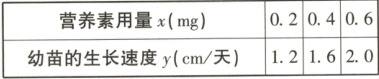 11. 控制变量法是生物学实验中常用的一种方法,某实验室研究人员配制了一种营养素,在控制其他因素不变的情况下,记录了$10^{\circ}C$时该营养素不同的用量与幼苗的生长速度,研究表明在一定用量范围内,幼苗的生长速度$y$($cm/$天)是该营养素用量$x$($mg$)的一次函数($0 < x < 2$),部分数据如下表: