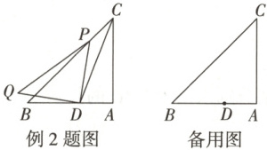例 2 一题多设问 如图,在 $Rt\triangle ABC$ 中,$\angle A = 90^{\circ},AB = AC = 5\sqrt{2}$,点 $D$ 为 $AB$ 边上一点,$AD = 2\sqrt{2}$,点 $P$ 为 $BC$ 边上一点,连接 $DP$,将 $DP$ 绕点 $D$ 逆时针旋转 $90^{\circ}$ 得到线段 $DQ$,连接 $PQ,CD$.