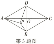3. 如图,在菱形ABCD中,对角线AC,BD相交于点O,AC=6,BD=2√{3},点P是菱形内一动点,且∠PAO=∠PDO,连接BP,求BP的最小值.