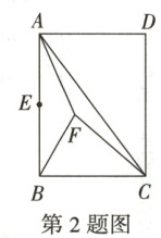 2. 如图,在矩形ABCD中,AC为对角线,E是AB的中点,将BE绕着点B顺时针旋转得到BF,点E的对应点为点F,连接AF,CF,若cos∠DAC=3/5,BC=3,求点F到直线AC距离的最小值.