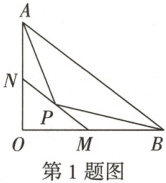 1. 如图,在Rt△AOB中,点M,N分别是直角边BO,AO上的动点,连接MN,且MN=2,点P是MN的中点,连接AP,BP,若AO=3,OB=4,求△ABP面积的最小值.