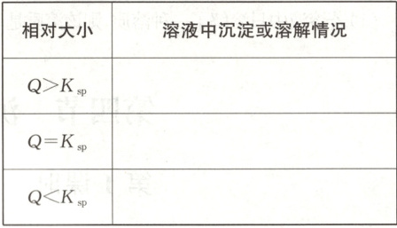 (2)根据某温度下任意时刻的$Q$和$K_{sp}$的相对大小,可以判断该温度下的溶液中难溶电解质的沉淀或溶解情况: