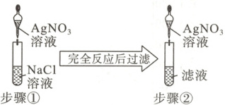 A 解析为了验证难溶的氯化银在水中也存在沉淀溶解平衡,可证明在氯化钠溶液中加入过量的硝酸银溶液完全反应后的滤液中还存在氯离子。由图可知,步骤①中应加入过量的$AgNO_{3}$溶液,使$NaCl$完全反应,A项正确,B项错误。步骤②中现象是产生了白色沉淀,这样才能证明滤液中氯离子的存在,C项错误。步骤②中选用的$AgNO_{3}$溶液浓度应大于步骤①,D项错误。