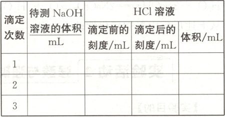 1. 向润洗过的酸式滴定管中加入 0.100 0 mol·L⁻¹ HCl 溶液,赶出气泡、调节液面至“0”刻度后准确记录读数,并填入下表中。