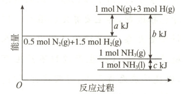 D 解析根据能量变化示意图可写出如下热化学方程式:1/2N₂(g)+3/2H₂(g)=NH₃(g) ΔH=(a-b) kJ·mol⁻¹;1/2N₂(g)+3/2H₂(g)=NH₃(l) ΔH=(a-b-c)kJ·mol⁻¹,由此可判断D项正确。
