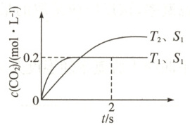 ②在 T₁ 温度下,0~2 s 内的平均反应速率 v(N₂)=1/2v(CO₂)=1/2×0.2 mol·L⁻¹/2 s=0.05 mol·L⁻¹·s⁻¹。
