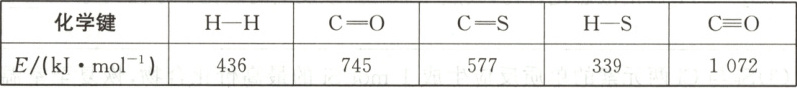5. ${COS}$(结构式为 ${O=C=S}$) 是煤气中主要的含硫杂质之一。利用反应 ${H_{2}(g) + COS(g)\xlongequal{}H_{2}S(g) + CO(g)}$ 可使工业气体总含硫量下降。已知断裂 $1\ mol$ 化学键所需的能量如表所示。则该反应的 $\Delta H$ 为(