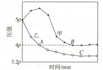 10.D 解析 正反应的气体分子数减小,故ΔS<0,甲容器起始压强增大,而气体分子数减小,容积不变,故正反应是放热反应,ΔH<0,故A项正确;乙容器的气体压强逐渐减小,说明反应条件为恒容恒温,故B项正确;CuO的质量不变,说明反应达到平衡状态,故C项正确;已知V(A)=V(B),p(A)=p(B),T(A)<T(B),根据阿伏加德罗定律可知,反应体系中气体的总物质的量:n(A)>n(B),即NO₂的转化率:α(A)<α(B),故K>Q,故D项错误。