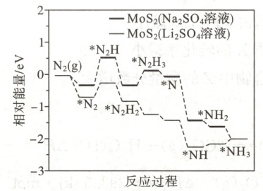 )。A.${Na_{2}SO_{4}}$ 溶液更加有利于 ${MoS_{2}}$ 对 ${N_{2}}$ 的活化