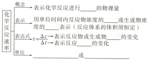 表达式→$v=\frac{\Delta c}{\Delta t}$→表示反应物或生成物_的变化→表示反应_的变化