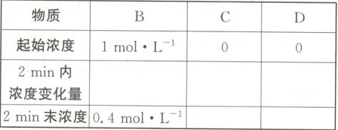 微训练 由反应:$4A(s)+3B(g)\rightleftharpoons 2C(g)+D(g)$,完成下列表格,并计算该反应的化学反应速率。