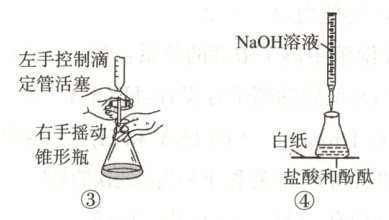 D.④中滴入半滴 $NaOH$ 标准液使溶液由无色变为红色,即达到滴定终点