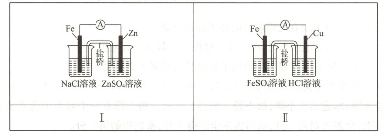 )。A.装置Ⅰ和装置Ⅱ中负极反应均是${Fe - 2e^{-} = Fe^{2+}}$