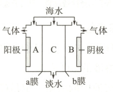 C.淡化工作完成后${A}$、${B}$、${C}$三室中${pH}$大小为${pH_{A} < pH_{B} < pH_{C}}$
