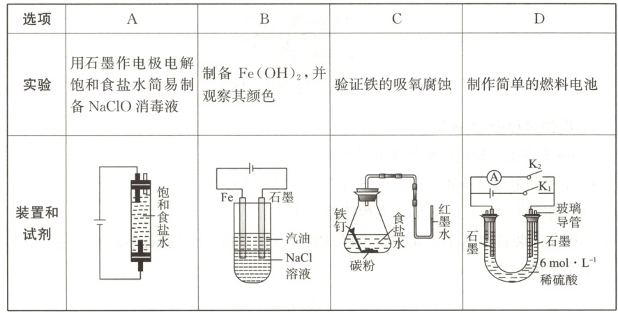 4. 关注“实验室化学”并加以实践能有效提高同学们的实验素养。下列利用电化学原理设计的实验不能达到目的的是(