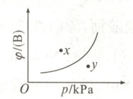 6. 已知反应$m{A}(s) + n{B}(g)\rightleftharpoons p{C}(g)$ $\Delta H < 0$,在一定温度下,反应达到平衡时,${B}$的体积分数$\varphi({B})$与压强变化的关系如图所示,下列叙述中一定正确的是(