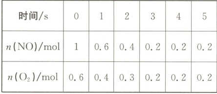 1. $T_{1}^{\circ}C$时在容积为$2L$的恒容密闭容器中发生反应:$2NO(g)+O_{2}(g)\rightleftharpoons 2NO_{2}(g)$ $\Delta H\lt0$。实验测得:$v_{正}=v_{消耗}(NO)=2v_{消耗}(O_{2})=k_{正}c^{2}(NO)· c(O_{2})$,$v_{逆}=v_{消耗}(NO_{2})=k_{逆}c^{2}(NO_{2})$,$k_{正}$、$k_{逆}$为速率常数,只受温度影响。不同时刻测得容器中$n(NO)$、$n(O_{2})$如表。