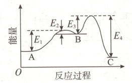 A 解析根据能量越低越稳定的原则,三种化合物中C的能量最低,所以C最稳定,A项正确;由图像可知,第一步反应为吸热反应,第二步反应为放热反应,B项错误;由图像知A与C的能量差不是$E_4$,C项错误;$A=B$的反应是吸热反应,与反应发生的条件无关,即吸热反应不一定要加热,D项错误。