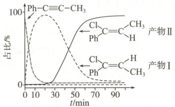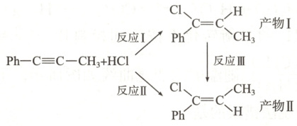 4. (浙江选考)一定条件下,$1 -$苯基丙炔$(Ph-C\equivC-CH_3)$可与$HCl$发生催化加成,反应如下。