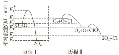 D.历程Ⅰ、历程Ⅱ中速率最大的一步反应的热化学方程式为$ClO(g) + O(g) = O_2(g) + Cl(g)$ $\Delta H = (E_5 - E_4)kJ·mol^{-1}$