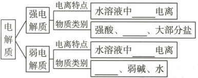 $(3)$多元弱碱在水中的电离也是分步进行的,但是一般按一步电离的形式书写。如$Fe(OH)₃$的电离方程式是$_。$