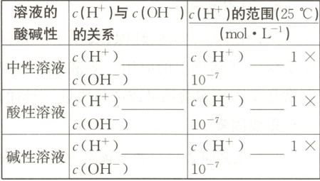 2. 常温下溶液的酸碱性与溶液中c(H⁺)、c(OH⁻)的关系。