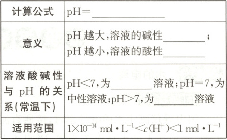 3. 溶液的pH与c(H⁺)及酸碱性的关系。