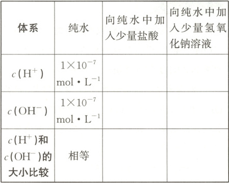 1. 比较常温时下列情况中,c(H⁺)和c(OH⁻)的值或变化趋势(增大或减小)。