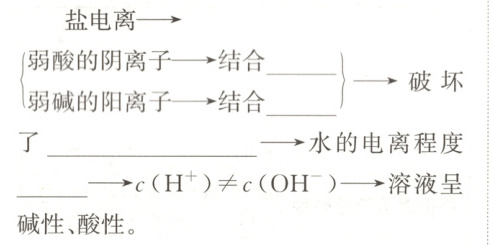 盐的离子 + 水⇌酸(或碱)+$OH^-$(或 $H^+$)。