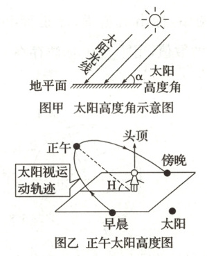 角),叫作太阳高度角,简称太阳高度(如图甲所示)。在太阳直射点
