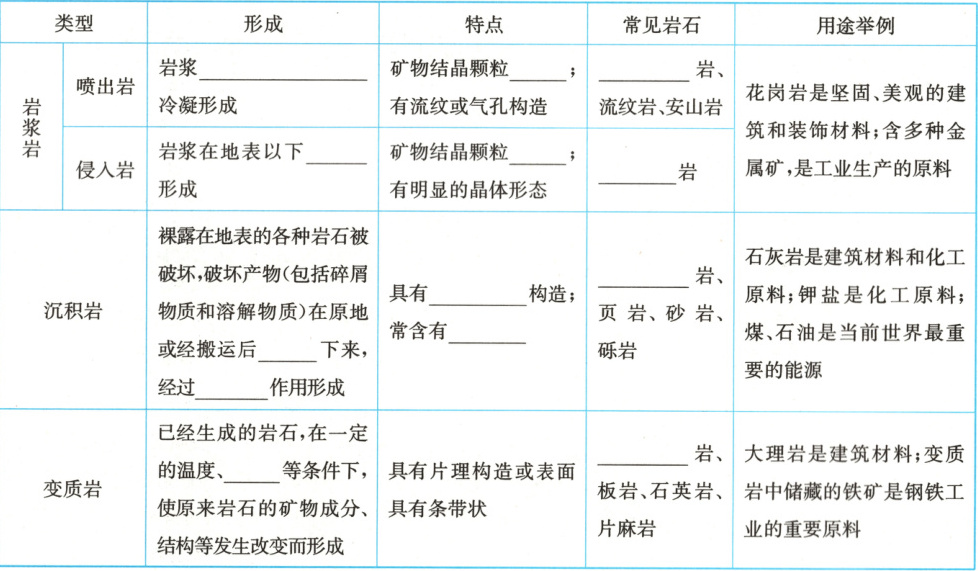 的主要物质。(2)分类:按照成因,可分为岩浆岩(火成岩)、沉积岩和变质岩三大类。