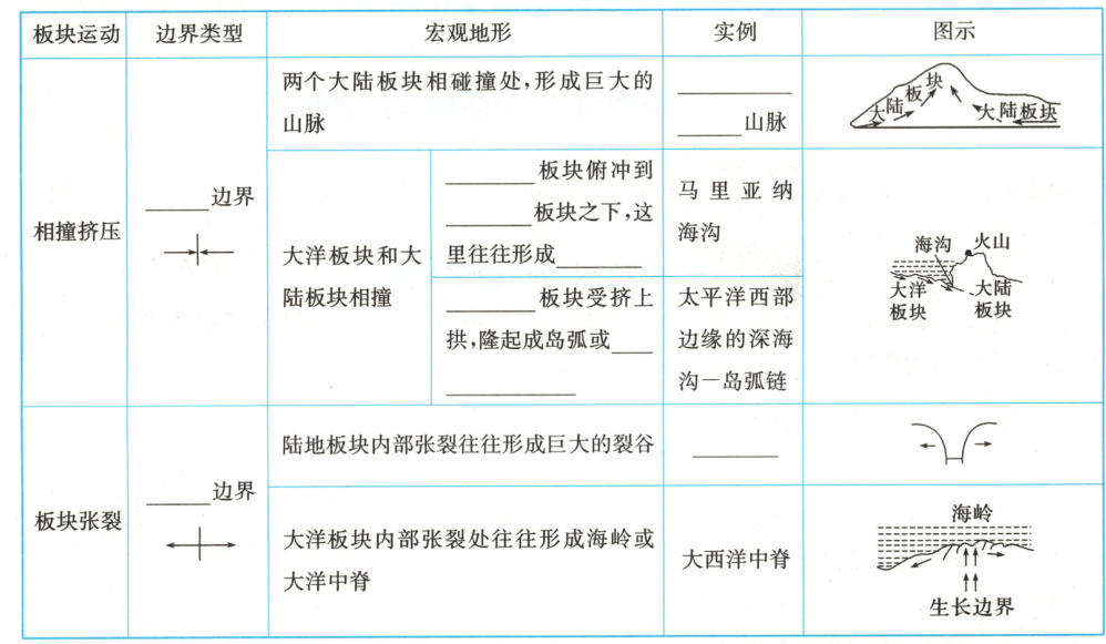 (3)消亡 喜马拉雅 大洋 大陆 海沟 大陆海岸山脉 生长 东非大裂谷
