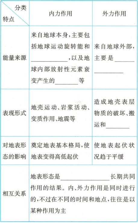 1.引力能 热能 太阳辐射能 堆积 内力与外力