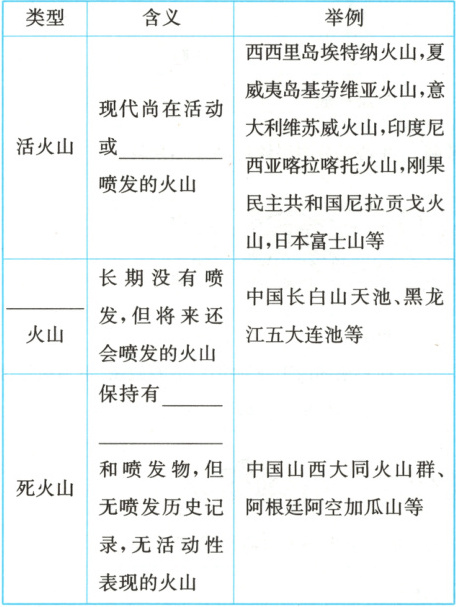 喷发的火山:常在地表形成火山锥、火山口等火山地貌,如富士山、长白山主峰等。3. 根据活动情况分类