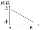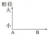 原因:由A到B,随着流速减慢,颗粒大的先沉积,颗粒小的后沉积。