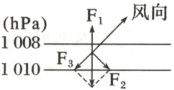 1.F₁表示水平气压梯度力,影响风力和风向;F₂表示地转偏向力,只影响风向;F₃表示摩擦力,影响风力和风向。