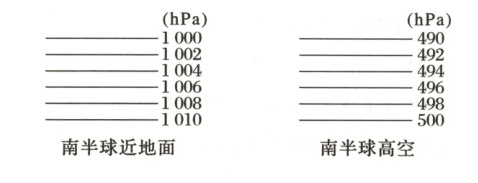 南半球高空:受水平气压梯度力和地转偏向力的影响,风向与等压线平行,形成东风。