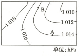 3. 结合下图,判断图中近地面 A、B 两处的风向并比较风力大小。