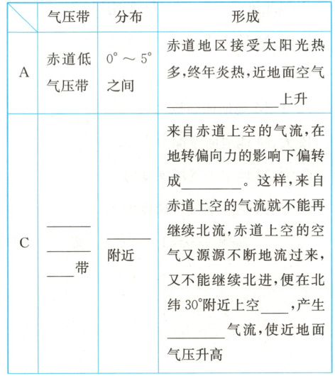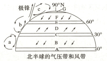 (2)①受热膨胀 副热带 高气压 30° 西风 堆积 下沉 副极地低气压 60° 暖而轻 冷而重 收缩下沉