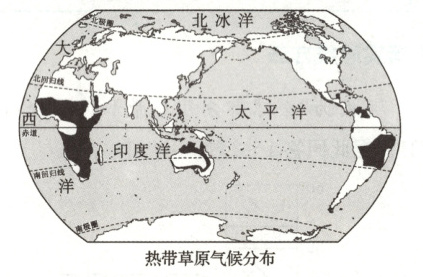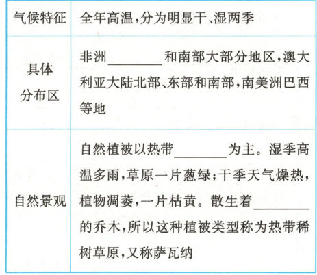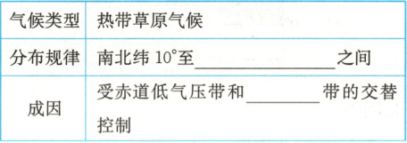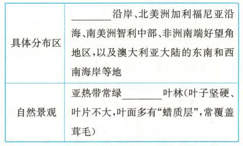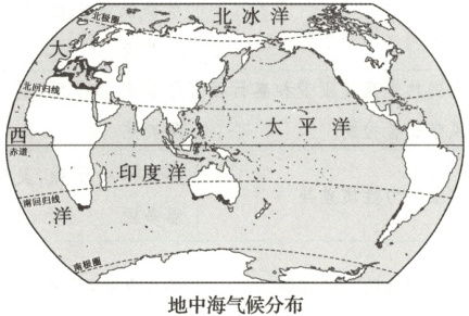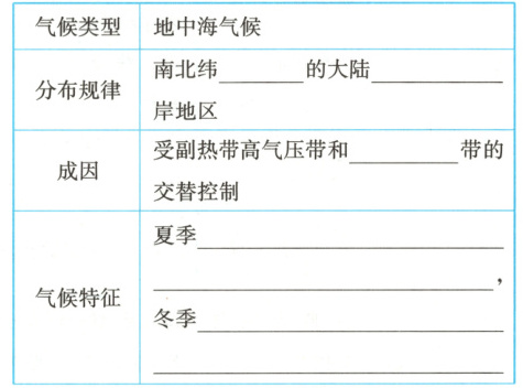 1. 30°~40°;西;西风;干旱炎热;暖湿多雨;地中海;硬 2. 南北回归线;信风;中部;草原;耐旱