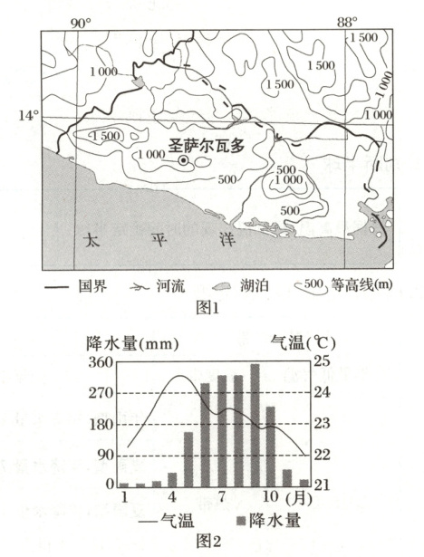 材料一 萨尔瓦多地处中美洲,地形以山地、高原为主,山区年降水量在1800毫米以上,沿海地带约为1000毫米。