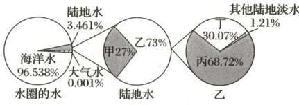 读“水圈构成图”,回答 1~2 题。
